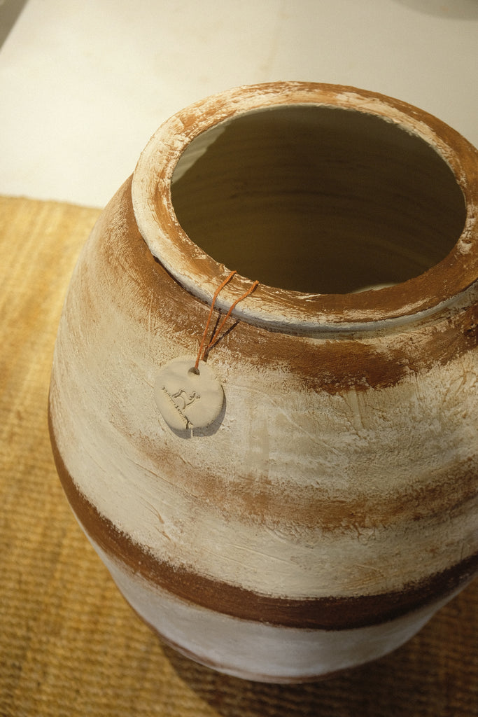 Rustica Band, ham toprağın ve doğal renklerin dinginliğini modern yaşam alanlarına taşıyan, otantik ve heybetli bir yer vazosudur. Geleneksel Akdeniz testilerinin formundan ilham alınarak tasarlanan bu büyük parça, hem rustik hem de sanatsal bir duruş sergiler.