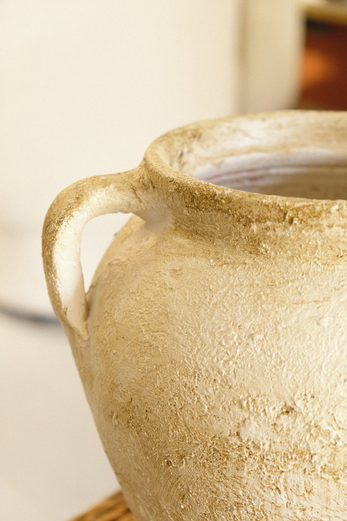 Her biri usta ellerde hayat bulan bu özel vazo, toprağın en saf ve en güçlü halini yansıtır. Kayayı andıran pürüzlü ve yüksek dokulu yüzeyi, ona sanki arkeolojik bir keşif hissi verir. Üzerine vuran her ışık, bu eşsiz dokunun derinliklerini ortaya çıkararak mekanınıza yaşayan, doğal bir sanat eseri kazandırır.